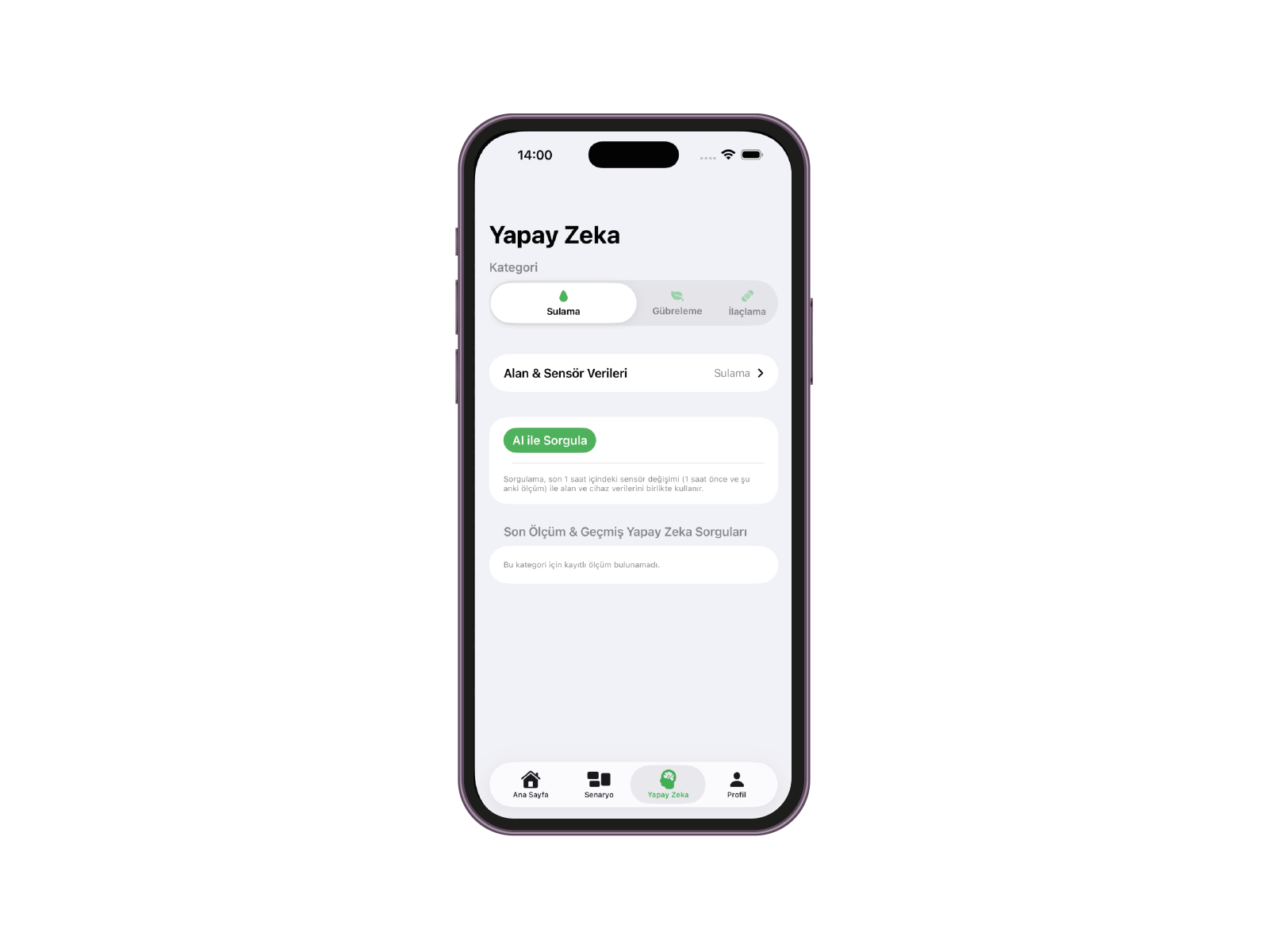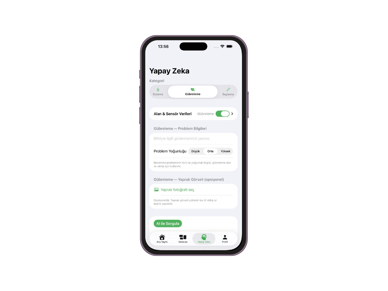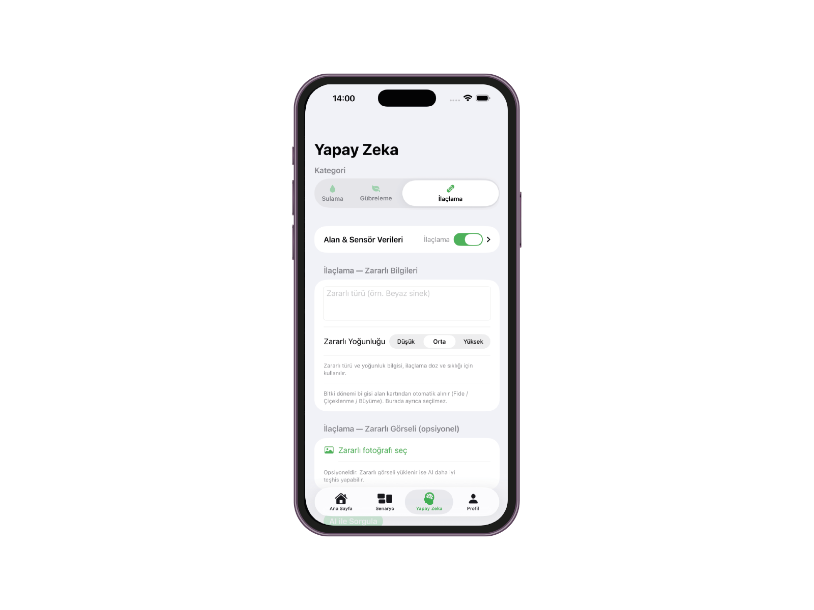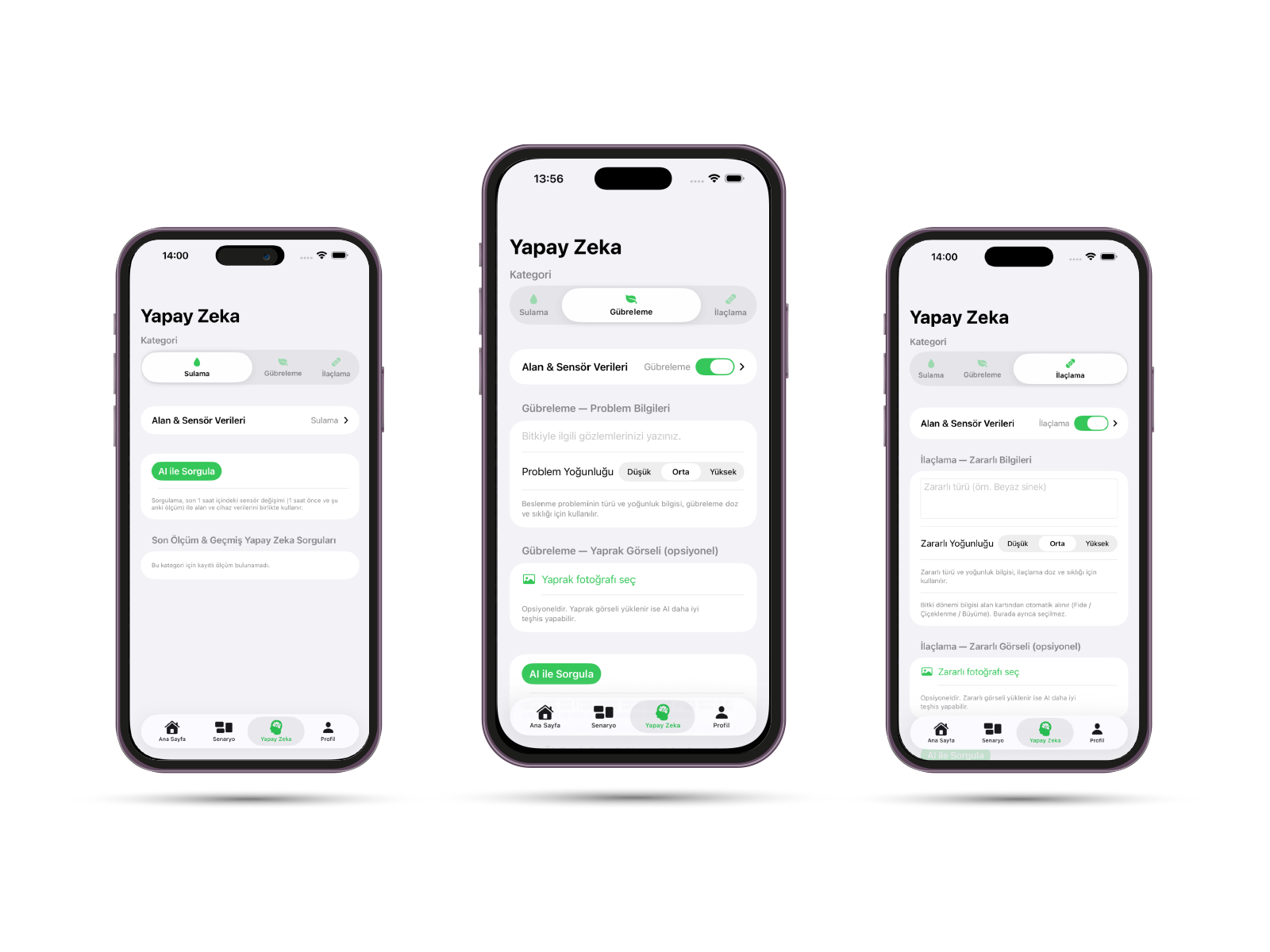 - Gerçek zamanlı bitki ihtiyacı analizi