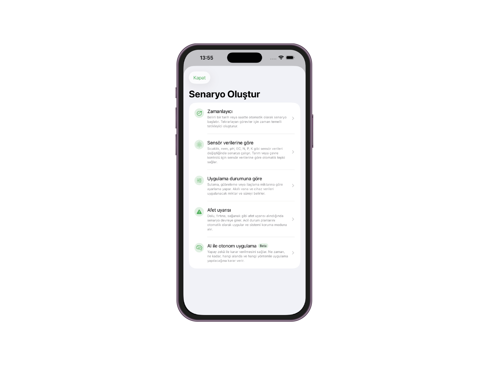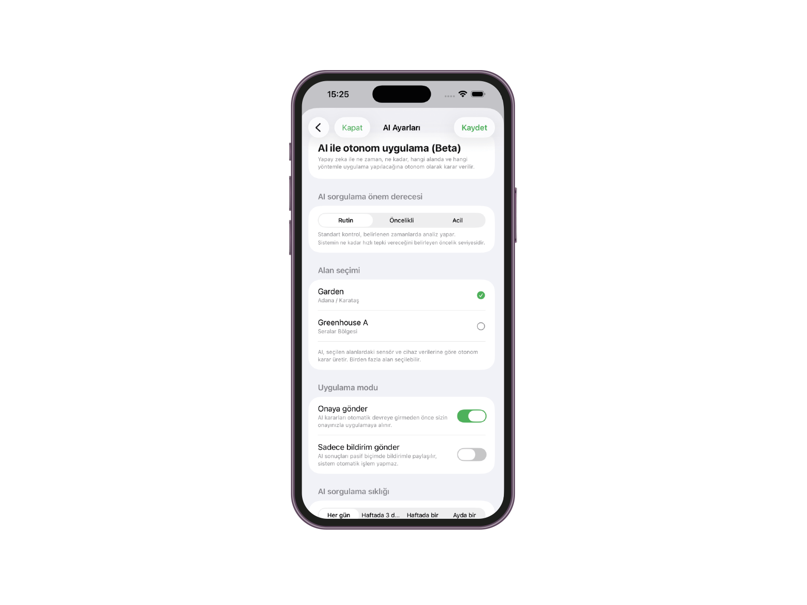 Bitkinin ihtiyacına göre otomatik karar üretir.