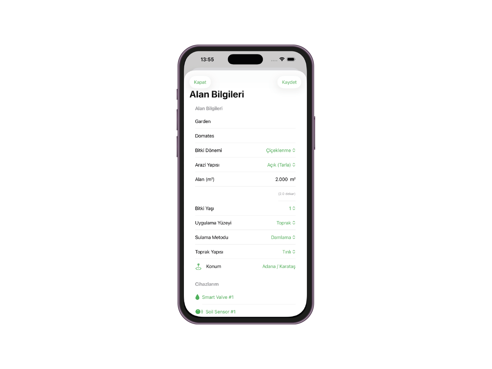 - Sulama ve gübreleme için otomatik öneriler
