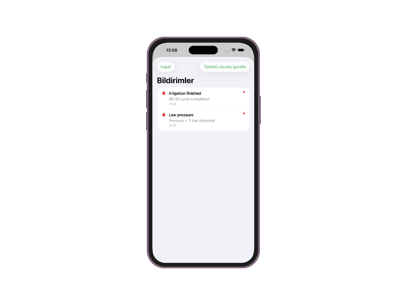 Cihazlar dünyanın her yerinden kontrol edilebilir. Sistem düzenli veya kritik durumlarda bildirim göndererek kullanıcıyı uyarır.
