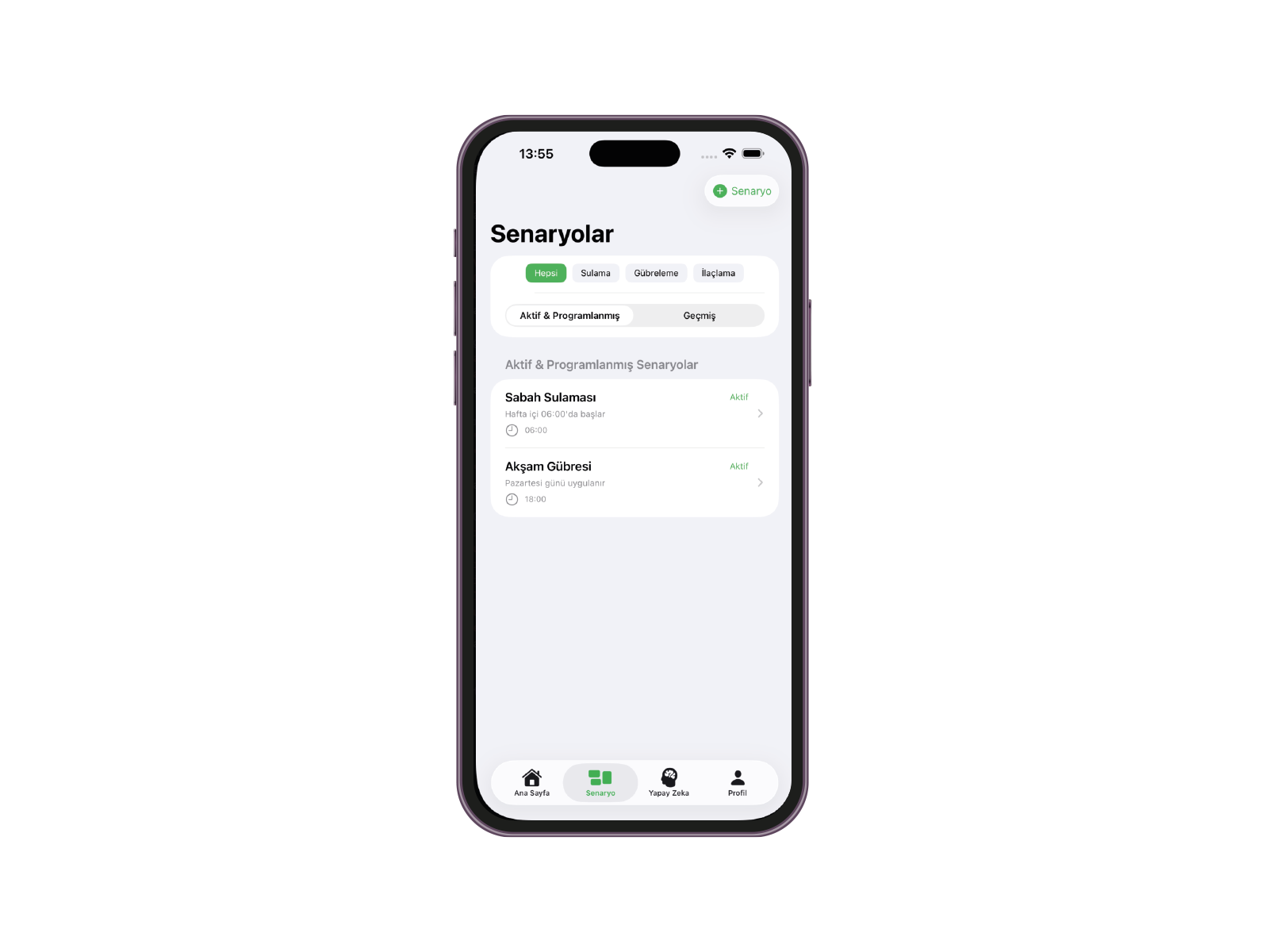 - Zamanlayıcı ve senaryo oluşturma