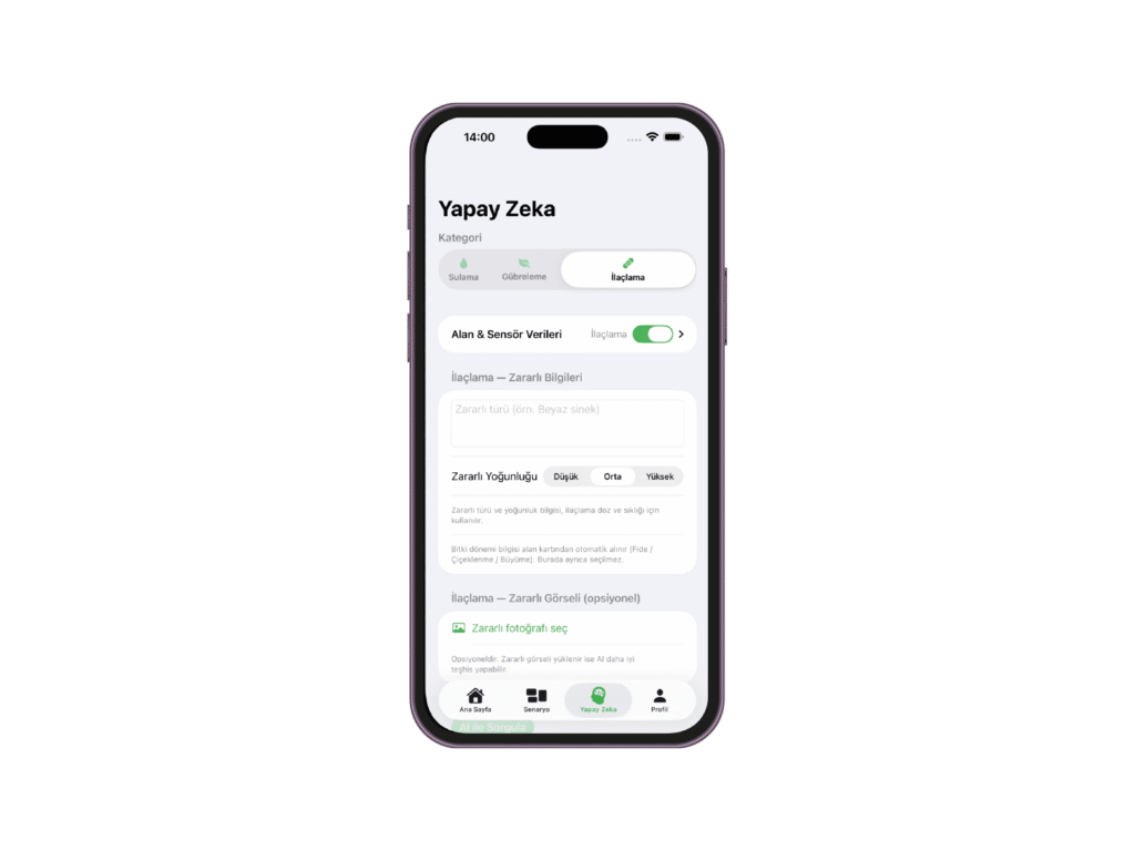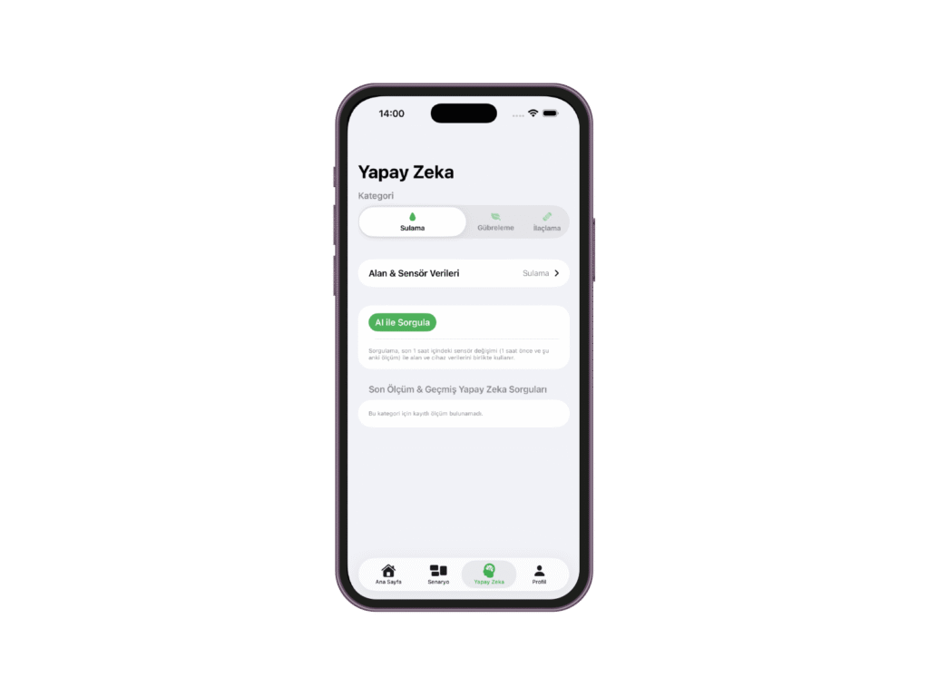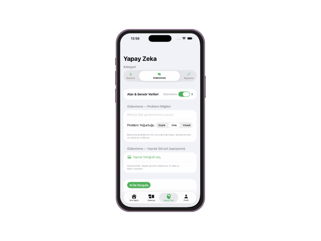 - Gerçek zamanlı bitki ihtiyacı analizi