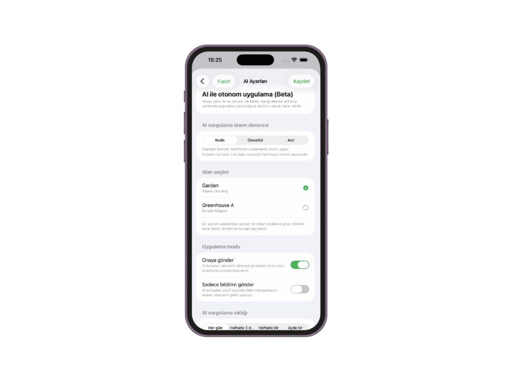 Bitkinin ihtiyacına göre otomatik karar üretir.