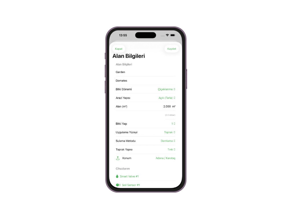 - Sulama ve gübreleme için otomatik öneriler