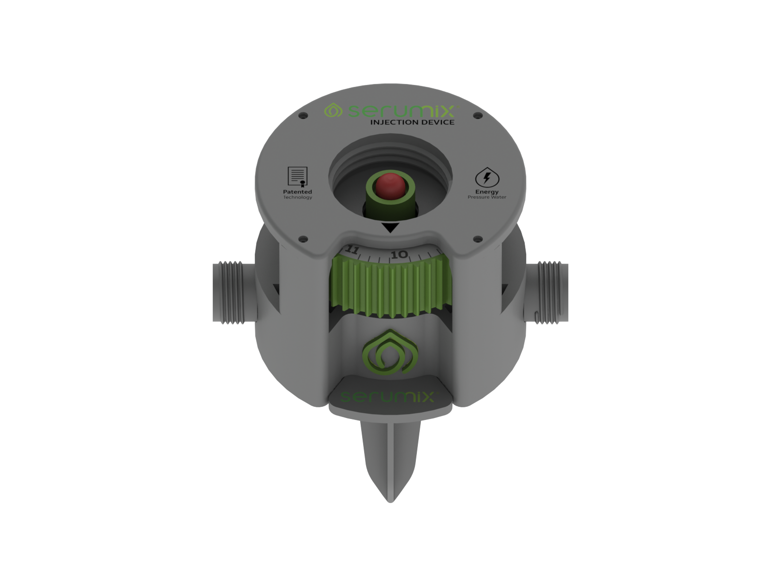 Serumix enjeksiyon cihazı, herhangi bir elektrik ihtiyacı olmadan sulama hattındaki debiyi kullanarak hassas dozajlama yapar. Damlama, yağmurlama ve püskürtme sistemleriyle uyumludur.